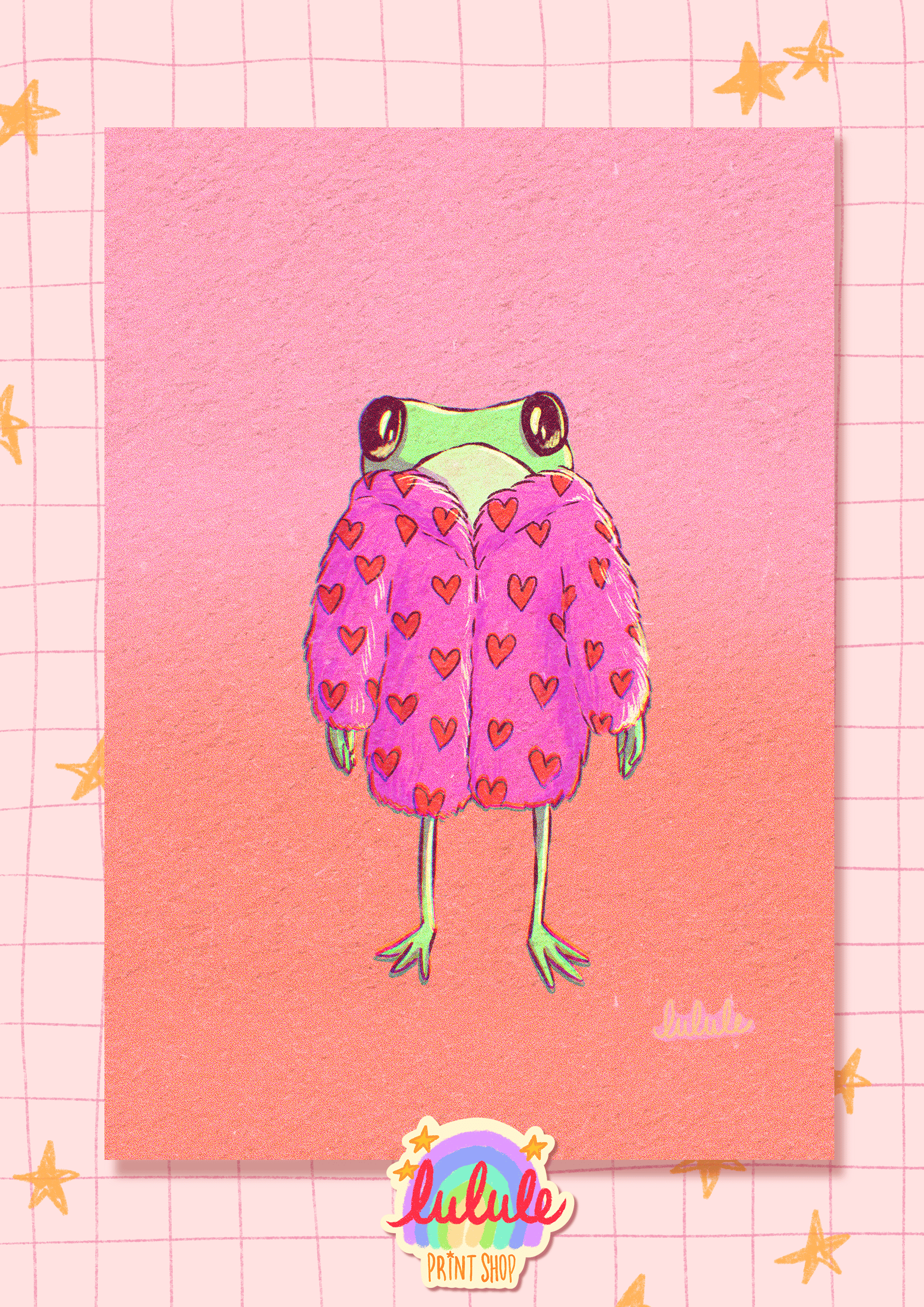 ⭐ "Fancy Frog" illustration numérique imprimée ⭐ Format A5 (14,8x21xcm) ⭐ Imprimé sur un papier 300g texturé ⭐ Signé à la main au dos ❤️