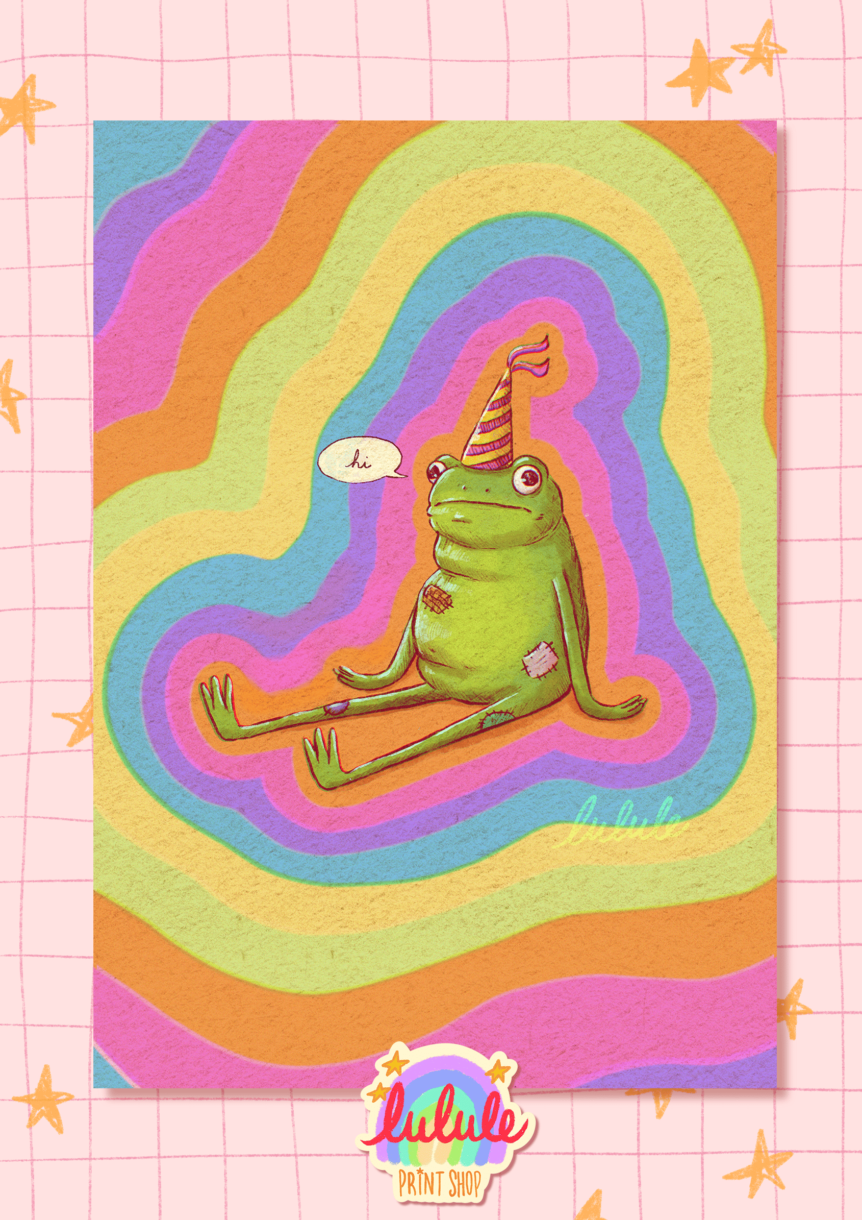 ⭐ "Hi Frog" illustration numérique imprimée ⭐ Format A4 (21x29,7cm) ⭐ Imprimé sur un papier 300g ⭐ Signé à la main au dos 💚