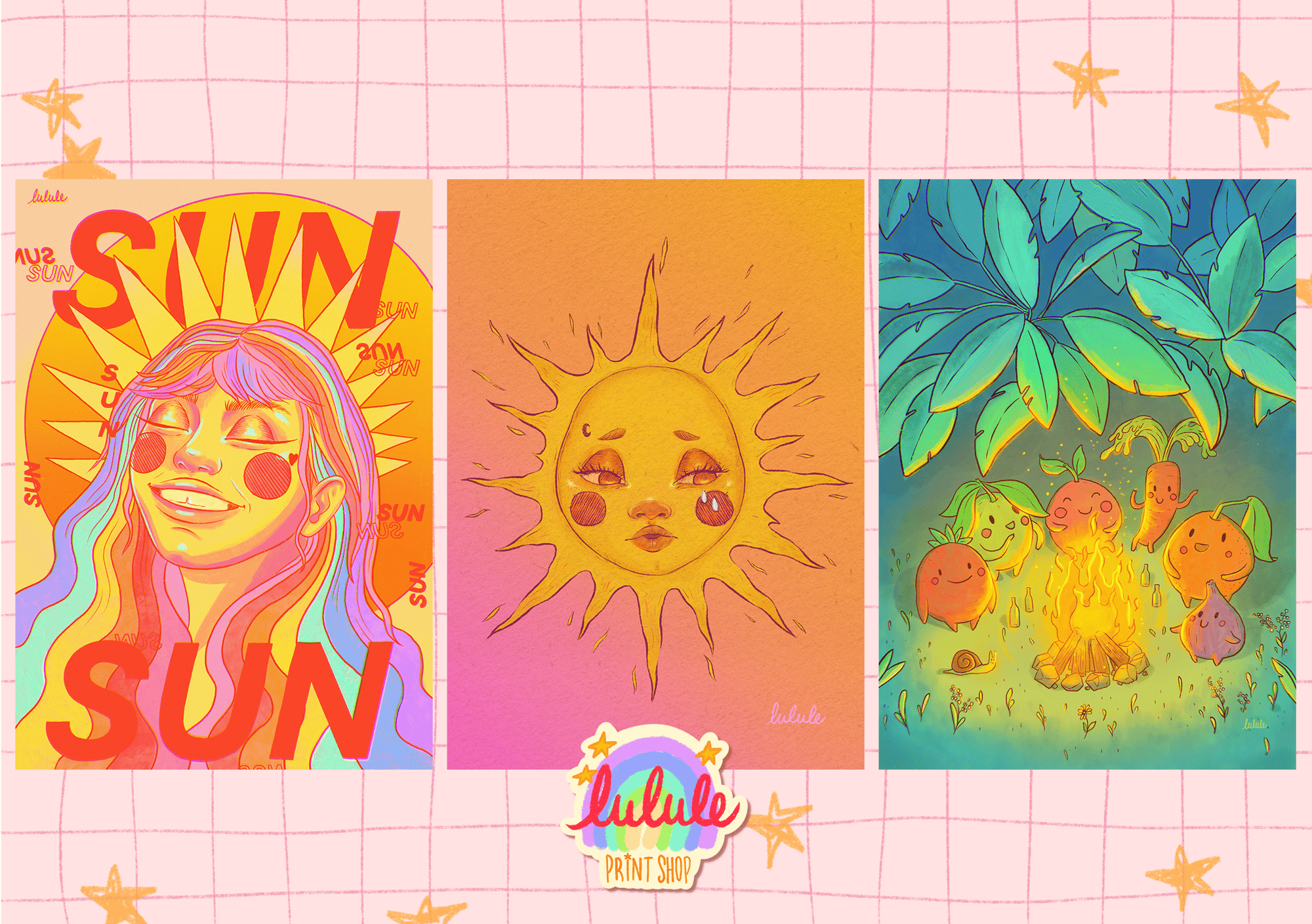 ⭐ Lot de 3 illustrations numériques imprimées, "Sunny Girl", "Crying Sun", "Potage"